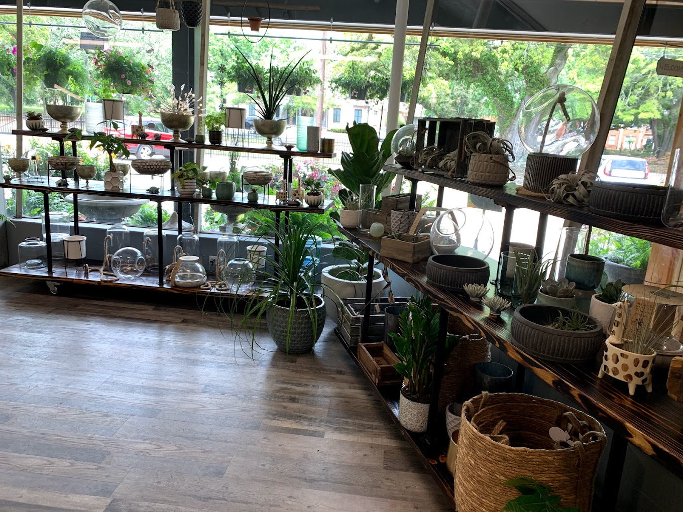 - Housing lush plants like palms, ferns, or cascading flowers.